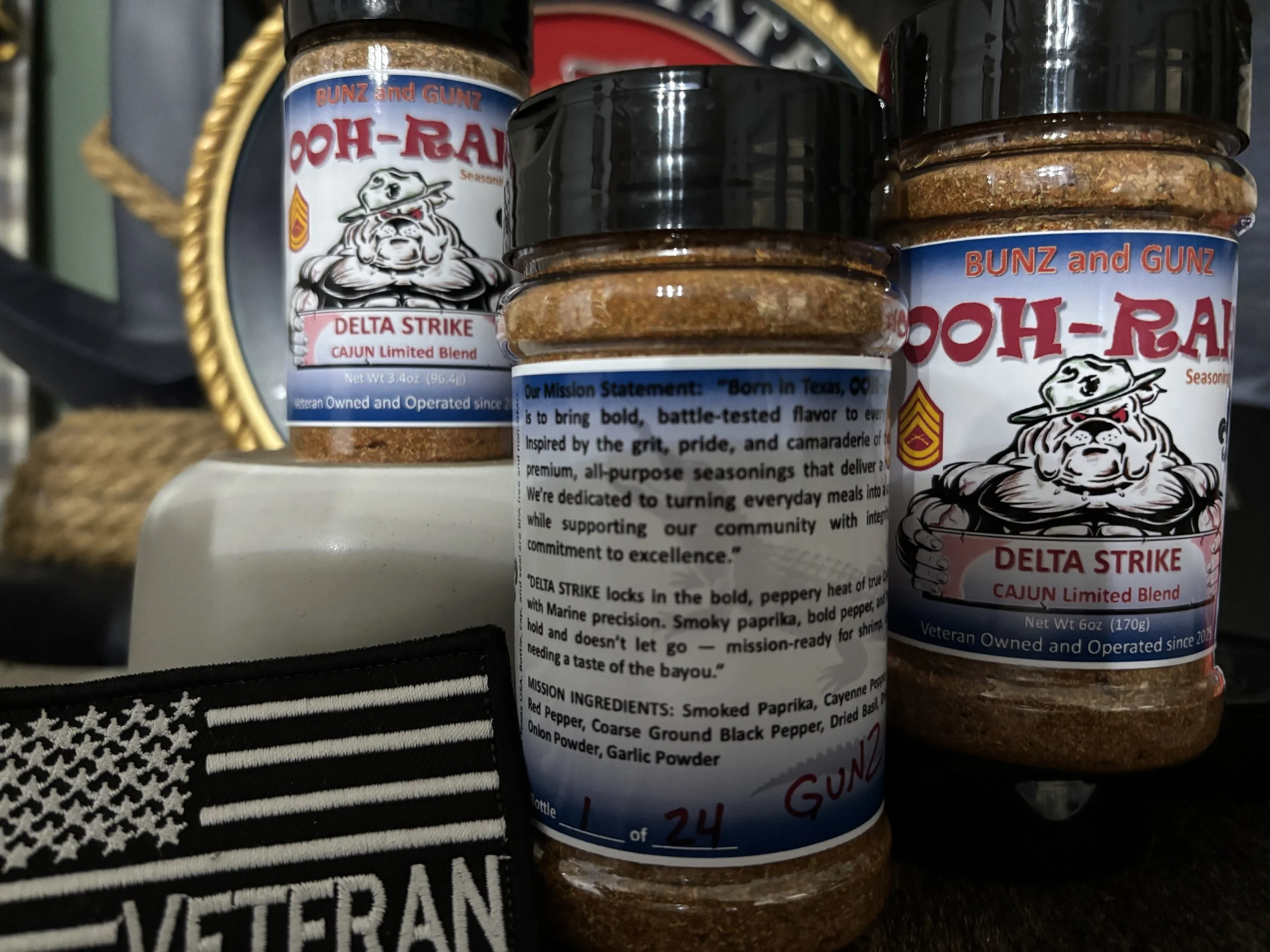 Shop Categories: All Everyday Essentials BBQ & Smoking Heat & Regional Dual Pack Kits (2.5oz bottles) Grill Bundle Packs MERCH Shop All Everyday Essentials BBQ & Smoking Heat & Regional Dual Pack Kits (2.5oz bottles) Grill Bundle Packs MERCH Classic Grill Pack™ $15.00 Add To Cart Added! Classic Grill Pack™ + Wine Tool $20.00 Add To Cart Added! Classic Grill Pack™ – Command Board Kit $30.00 Add To Cart Added! Classic Grill Pack™ – Grill Ready Kit $30.00 Black Green Tan Gray Add To Cart Added! HYDRATION COMMAND PACK – 22oz Insulated Bottle + 2 Seasonings $30.00 Bulldog Round Veteran Add To Cart Added! OOH-RAH™ 22oz Insulated Water Bottle $20.00 Bulldog Logo Veteran Round Logo Add To Cart Added! Men’s OOH-RAH™ Signature Graphic Tee from $20.00 View Options Women’s OOH-RAH™ Signature Graphic Tee $20.00 View Options Field Ration (AP) 3.5oz $7.50 Add To Cart Added! Field Ration (AP) 6oz $11.50 Add To Cart Added! HARD TARGET Mission-Grade Salt and Pepper (3.5oz) $7.50 Add To Cart Added! HARD TARGET Mission-Grade Salt and Pepper (6oz) $11.50 Add To Cart Added! DEVIL DOC Garlic-Blend (3.5oz) $7.50 Add To Cart Added! DEVIL DOC Garlic-Blend (6oz) $11.50 Add To Cart Added! SpecOps: Italia (Tactical Herb Blend) 3.5oz $7.50 Add To Cart Added! SpecOps: Italia (Tactical Herb Blend) 6oz $11.50 Add To Cart Added! Anchor's Aweigh Sea-Salt & Lemon Blend (3.5oz) $7.50 Add To Cart Added! Anchor's Aweigh Sea-Salt & Lemon Blend (6oz) $11.50 Add To Cart Added! PATRIOT Poultry Blend (PPB) (3.5oz) $7.50 Add To Cart Added! PATRIOT Poultry Blend (PPB) (6oz) $11.50 Add To Cart Added! HARD TARGET Steak and Beef Rub (3.5oz) $7.50 Add To Cart Added! HARD TARGET Steak and Beef Rub (6 oz) $11.50 Add To Cart Added! HAMMER DOWN - Smoked Ham Glaze (3.5oz) $7.50 Add To Cart Added! HAMMER DOWN - Smoked Ham Glaze (6oz) $11.50 Add To Cart Added! RECON SMOKE - Stealth Flavor (3.5oz) $7.50 Add To Cart Added! RECON SMOKE - Stealth Flavor (6oz) $11.50 Add To Cart Added! CHILI COMMAND Fire Mission (3.5oz) $7.50 Add To Cart Added! CHILI COMMAND Fire Mission (6oz) $11.50 Add To Cart Added! CAMP FUEGO Tex-Mex 3.5oz $7.50 Add To Cart Added! CAMP FUEGO Tex-Mex 6oz $11.50 Add To Cart Added! Operation: RED BUFFALO (3.5oz) Sale Price: $6.50 Original Price: $7.50 Sale Add To Cart Added! Operation: RED BUFFALO (6oz) Sale Price: $10.00 Original Price: $11.50 Sale Add To Cart Added! Everyday Essentials Fireteam $10.00 Add To Cart Added! Friends & Family Essentials $10.00 Add To Cart Added! Italian Ops Kit $10.00 Add To Cart Added! Barracks Tex-Mex Fireteam $10.00 Add To Cart Added! Grill Commander Duo $10.00 Add To Cart Added! Flight Deck Poultry Pack $10.00 Add To Cart Added! Buffalo Smoke Fireteam $10.00 Add To Cart Added! Fire Mission Chili $10.00 Add To Cart Added! Hammer Down Fireteam $10.00 Add To Cart Added! DELTA STRIKE - CAJUN Limited Blend (6oz) Sale Price: $10.00 Original Price: $11.50 Sale Add To Cart Added! Engraved Bamboo Charcuterie Board – 12 x 8.27 inch from $30.00 Select Back Engraving Option Standard (Veteran-Owned Logo - Lower Square) 1 Small Custom Square 2 Small Custom Squares Large Custom Panel Large Panel & 1 Small Square Full Custom (All Panels) Add To Cart Added! OOH-RAH Bamboo Cutting Board 5 x 11 inch (5 x 7 inch cut space) Sale Price: $10.00 Original Price: $12.00 Sale Add To Cart Added! OOH-RAH Branded Apron $10.00 Gray Green Tan Black Add To Cart Added! OOH-RAH Bar Mop Towel with Bulldog Logo from $5.00 Sale Select Color Black Gray Green Add To Cart Added! OOH-RAH Bar Mop Towel with Veteran Owned Logo from $5.00 Sale Select Color Black Gray Green Add To Cart Added!