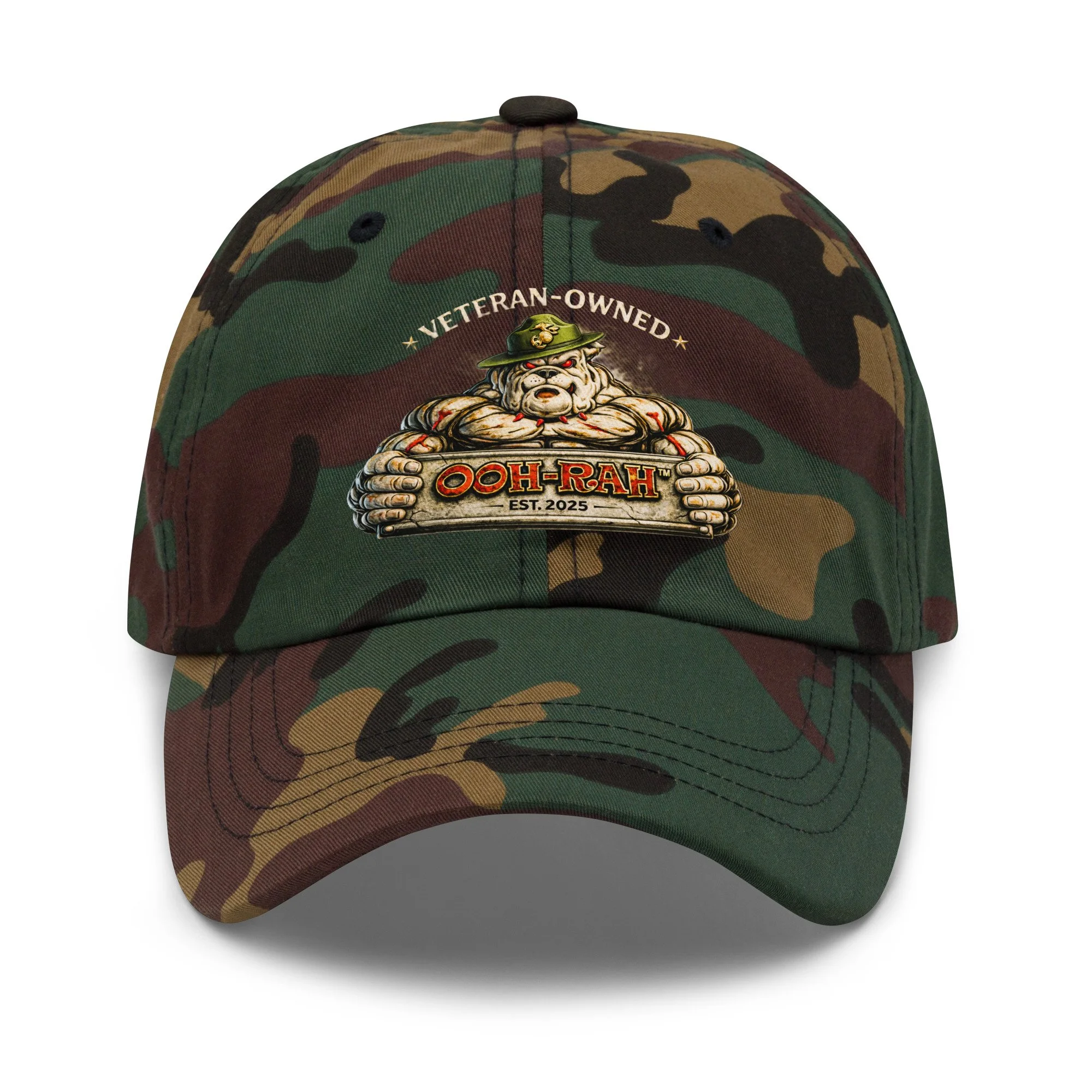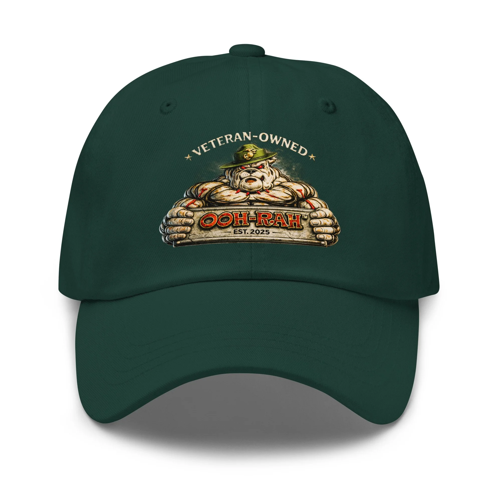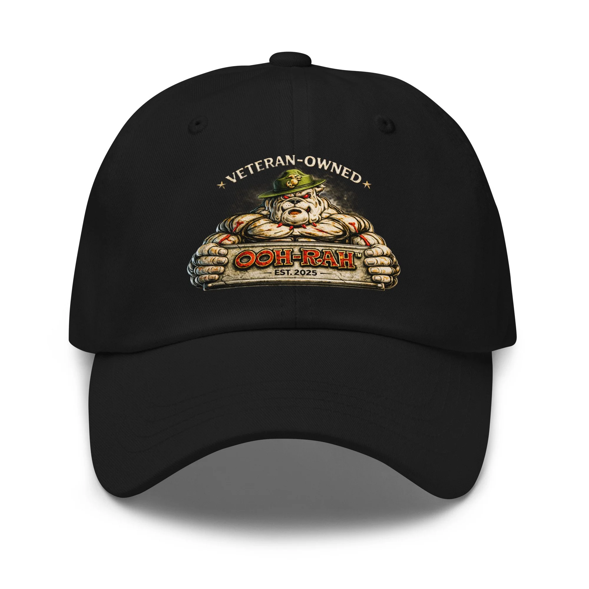 The OOH-RAH™ Veteran-Owned Hat represents grit, discipline, and the mindset that never backs down. Featuring the signature bulldog emblem, this lid is made for those who carry themselves with purpose—on duty, off duty, or on the grill.
